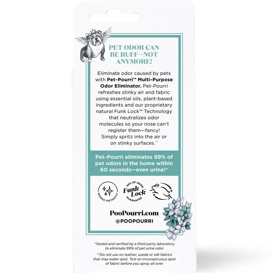 Get that fresh-out-the-bath scent without the stress of having to actually get them in the bath. Freshens pet coat odors—100% guaranteed! For an instant refresh, Pet-Pourri uses essential oils, plant-based ingredients and our proprietary Funk Lock™ Technology to help neutralize odor molecules so your nose can't register them-fancy!